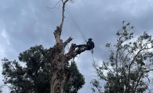 O.F Jardin a effectué l'élagage d'un arbre sec qui se trouve au dessus d'une maison à Moriani.
